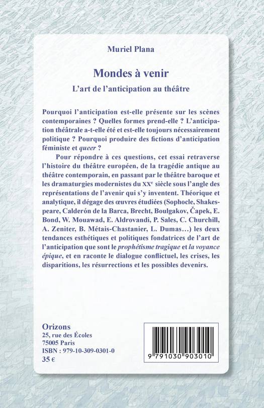 Pourquoi l'anticipation est-elle présente sur les scènes contemporaines ? Quelles formes prend-elle ? L'anticipation théâtrale a-t-elle été et est-elle toujours nécessairement politique ? Pour répondre à ces questions, cet essai retraverse l'histoire du théâtre européen, de la tragédie antique au théâtre contemporain, en passant par le théâtre baroque et les dramaturgies modernistes du XXe siècle sous l'angle des représentations de l'avenir qui s'y inventent. Théorique et analytique, il dégage des uvres étudiées (de Sophocle à L. Dumas, en passant par Shakespeare, Calderón de la Barca, Brecht, Boulgakov, des auteurs modernes et contemporains), deux tendances esthétiques et politiques fondatrices de l'art de l'anticipation que sont le prophétisme tragique et la voyance épique.