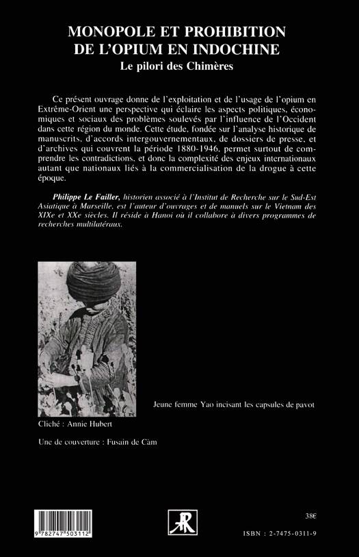Ce présent ouvrage donne de l'exploitation et de l'usage de l'opium en Extrême-Orient une perspective qui éclaire les aspects politiques, économiques et sociaux des problèmes soulevés par l'influence de l'Occident dans cette région du monde. Cette étude permet de comprendre les contradictions, et donc la complexité des enjeux internationaux autant que nationaux liés à la commercialisation de la drogue entre 1880 et 1946.