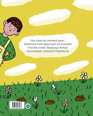 Le chien d'Hippolyte est vraiment super. Seulement voilà, depuis qu'il est tout petit, Monsieur Crotte, car c'est son nom, fait des crottes, beaucoup, partout, tout le temps et vraiment n'importe où ! Hippolyte a tout essayé, mais rien n'y fait ! Alors il décide de l'emmener chez un médecin, puis un deuxième, puis un prof de yoga, un hypnotiseur, et même une psychologue. Rien ne fonctionne et Hippolyte s'énerve. Mais quand Monsieur Crotte disparaît brusquement, le garçon part à sa recherche et le retrouve grâce aux crottes toutes fraîches qu'il a semées. Il est tellement heureux de le revoir que, finalement, il s'en fiche que son chien fasse des crottes beaucoup, partout, tout le temps et vraiment n'importe où !