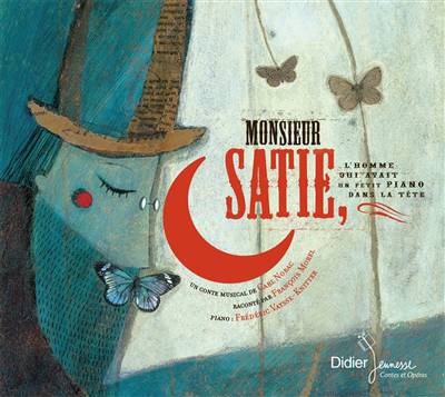 Au détour de ses promenades et de ses ruminations intérieures, Monsieur Satie rencontre une fille aux grands yeux verts, la pauvreté. Et puis aussi un facteur pas très aimable, un nuage voyageur, un parapluie qui aime danser au soleil, un chapeau à rêves et Madame Valladon, avec qui il esquisse quelques pas de danse… Mais aussi son piano, bien sûr, qu’il emmène en promenade dès qu’il fait beau.