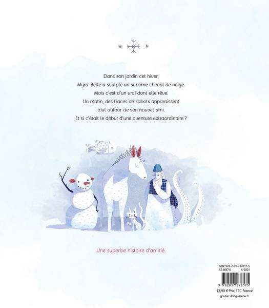 Dans son jardin cet hiver, Myra-Belle a sculpté un sublime cheval de neige. Mais c’est d’un vrai animal dont elle rêve. Un matin, des traces de sabots apparaissent tout autour de son nouvel ami. C’est le début d’une aventure extraordinaire.