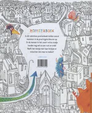 In een zwart-witte stad loopt een meisje met haar krijtjes. In kleurige lijnen tekent ze de meest wonderlijke monsters, die - zodra ze verder loopt - één voor één tot leven komen.