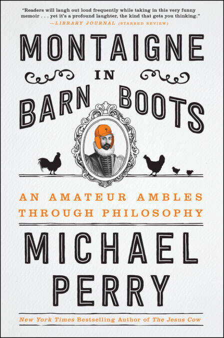"The journey began on a gurney," writes Michael Perry, describing the debilitating kidney stone that led him to discover the essays of Michel de Montaigne. Reading the philosopher in a manner he equates to chickens pecking at scraps—including those eye-blinking moments when the bird gobbles something too big to swallow—Perry attempts to learn what he can (good and bad) about himself as compared to a long-dead French nobleman who began speaking Latin at the age of two, went to college instead of kindergarten, worked for kings, and once had an audience with the Pope. Perry "matriculated as a barn-booted bumpkin who still marks a second-place finish in the sixth-grade spelling bee as an intellectual pinnacle . . . and once said hello to Merle Haggard on a golf cart."