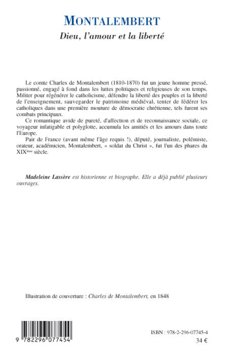 Le comte Charles de Montalembert (1810-1870) fut un homme passionné, engagé à fond dans les luttes politiques et religieuses de son temps. Ce romantique avide d'affection et de reconnaissance sociale, ce voyageur infatigable, polyglotte, accumula amitiés et amours dans toute l'Europe. Pair de France, député, journaliste, polémiste, orateur, académicien, Montalembert, "soldat du Christ", fut l'un des phares du XIXe siècle.