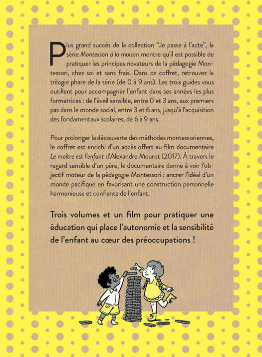 De la naissance à 9 ans, le pas à pas idéal pour les parents qui souhaitent s'approprier la méthode Montessori à la maison. Ces 3 volumes ici rassemblés accompagnés du documentaire d'Alexandre Mourot "Le maître est l'enfant", accompagneront les parents durant les années les plus formatrices en favorisant une construction personnelle harmonieuse et confiante de l'enfant.