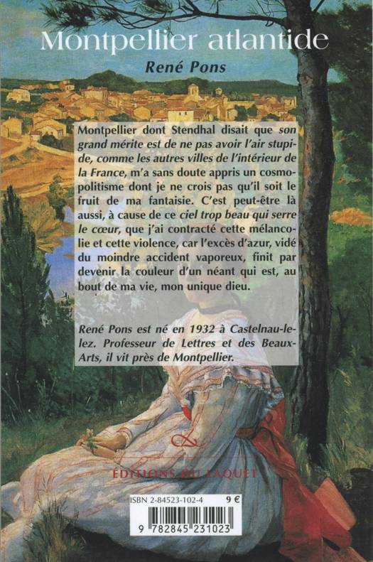 Montpellier dont Stendhal disait que son grand mérite est de ne pas avoir l'air stupide, comme les autres villes de l'intérieur de la France, m'a sans doute appris un cosmopolitisme dont je ne crois pas qu'il soit le fruit de ma fantaisie. C'est peut-être là aussi, à cause de ce ciel trop beau qui serre le coeur, que j'ai contracté cette mélancolie et cette violence, car l'excès d'azur, vidé du moindre accident vaporeux, finit par devenir la couleur d'un néant qui est, au bout de ma vie, mon unique dieu.