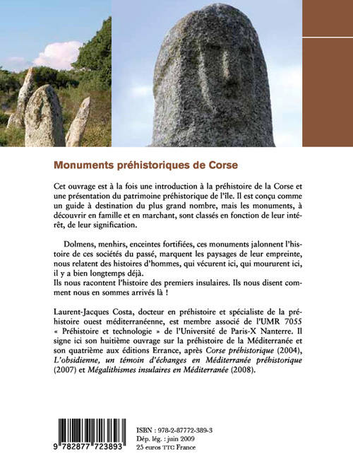 Cet ouvrage est à la fois une introduction à la préhistoire de la Corse et une présentation du patrimoine préhistorique de l'île. Il est conçu comme un guide à destination du plus grand nombre, mais les monuments, à découvrir en famille et en marchant, sont classés en fonction de leur intérêt et de leur signification.