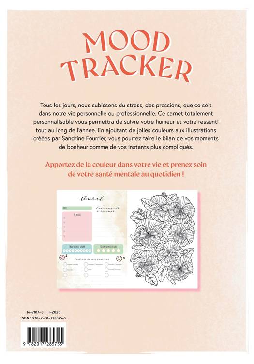 Tous les jours, nous subissons du stress, des pressions, que ce soit dans notre vie personnelle ou professionnelle. Ce carnet totalement personnalisable vous permettra de suivre votre humeur tout au long de l’année et votre ressenti tout au long de l’année. En ajoutant de jolies couleurs aux illustrations créées par Sandrine Fourrier, vous pourrez faire le bilan de vos moments de bonheur comme de vos instants plus compliqués. Apportez de la couleur dans votre vie et prenez soin de votre santé mentale au quotidien !