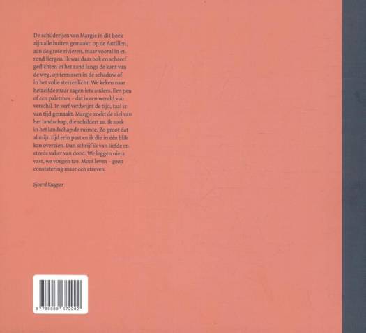 De schilderijen van Margje in dit boek zijn alle buiten gemaakt: op de Antillen, aan de grote rivieren, maar vooral in en rond Bergen. Ik was daar ook en schreef gedichten in het zand langs de kant van de weg, op terrassen in de schaduw of in het volle sterrenlicht. We keken naar hetzelfde maar zagen iets anders. Een pen of een paletmes - dat is een wereld van verschil. In verf verdwijnt de tijd, taal is van tijd gemaakt. Margje zoekt de ziel van het landschap, die schildert ze. Ik zoek in het landschap de ruimte. Zo groot dat al mijn tijd er in past en ik die in één blik kan overzien. Dan schrijf ik van liefde en steeds vaker van dood. We leggen niets vast, we voegen toe. Mooi leven - geen constatering maar een streven. - Sjoerd Kuyper
