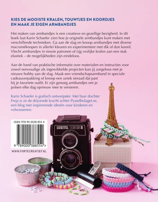 Het maken van armbanden is een creatieve en gezellige bezigheid. In dit boek laat Karin Schaefer zien hoe je originele sieraden kunt maken met verschillende technieken. Ga aan de slag met geknoopte armbandjes met diverse macraméknopen in allerlei kleuren en experimenteer met dik koord of dunnere draden. Vlecht armbandjes in mooie patronen of rijg vrolijke kralen aan je elastiek: de mogelijkheden zijn eindeloos.