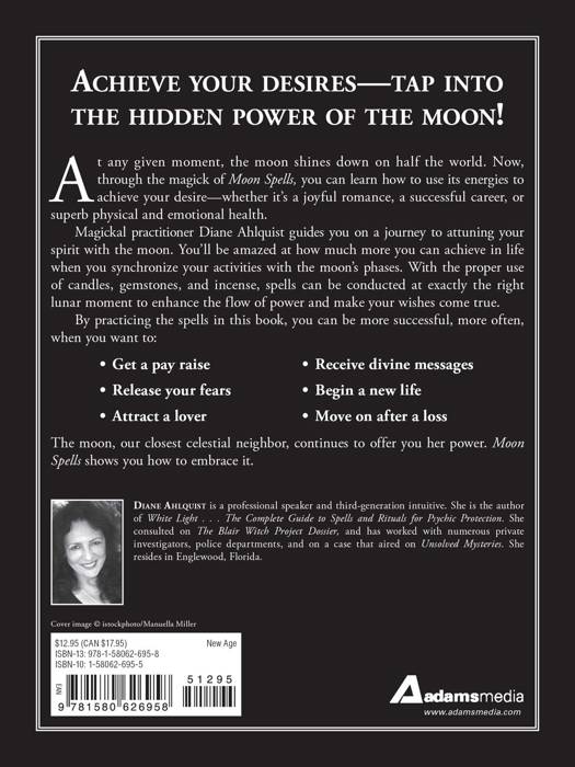 Achieve Your Desires--Tap Into the Hidden Power of the Moon!At any given moment, the moon shines down on half the world. Now, through the magick of Moon Spells, you can learn how to use its energies to achieve your desire--whether it's a joyful romance, a successful career, or superb physical and emotional health.Magickal practitioner Diane Ahlquist guides you on a journey to attuning your spirit with the moon. You'll be amazed at how much more you can achieve in life when you synchronize your activities with the moon's phases. With the proper use of candles, gemstones, and incense, spells can be conducted at exactly the right lunar moment to enhance the flow of power and make your wishes come true.By practicing the spells in this book, you can be more successful, more often, when you want to get a pay raise, release your fears, attract a lover, receive divine messages, begin a new life, or move on after a loss. The moon, our closest celestial neighbor, continues to offer you her power. Moon Spells shows you how to embrace it.