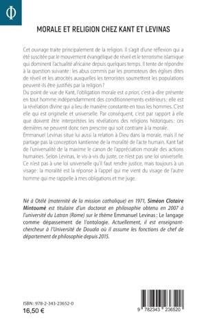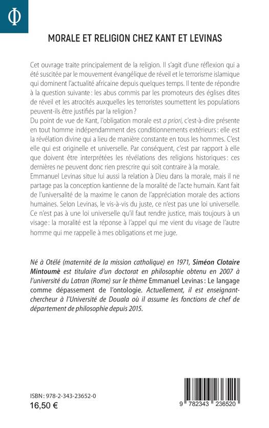 Cette réflexion a été suscitée par le mouvement évangélique et le terrorisme islamique qui dominent l'actualité africaine. Les abus commis par les promoteurs des églises dites de réveil et les atrocités commises par les terroristes peuvent-ils être justifiés par la religion ? Du point de vue de Kant, l'obligation morale est a priori, elle est originelle et universelle. Par conséquent, c'est par rapport à elle que doivent être interprétées les révélations des religions historiques: elles ne peuvent donc rien prescrire qui soit contraire à la morale. Emmanuel Levinas situe lui aussi la relation à Dieu dans la morale, mais il ne partage pas la conception kantienne de la moralité de l'acte humain. Kant fait de l'universalité le canon de l'appréciation morale de nos actions. Selon Levinas, le vis-à-vis du juste, ce n'est pas une loi universelle. C'est toujours à un visage qu'il faut rendre justice: la moralité est la réponse à l'appel qui me vient du visage de l'autre homme qui me rappelle à mes obligations et me juge.