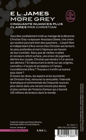 Vous êtes cordialement invité au mariage de la décennie : Christian Grey va épouser Anastasia Steele. Une union qui soulève pourtant bien des questions… L'esprit libre et indépendant d'Ana ravive chez Christian ses terreurs les plus profondes et met à l'épreuve son besoin de tout contrôler. Alors que de vieilles rivalités et rancœurs refont surface, une erreur de jugement déchire leur couple. Christian parviendra-t-il à vaincre ses démons ? En découvrant la vérité sur ses origines, connaîtra-t-il la paix et acceptera-t-il l'amour inconditionnel d'Ana ? Trouvera-t-il enfin sa nuance plus claire ?