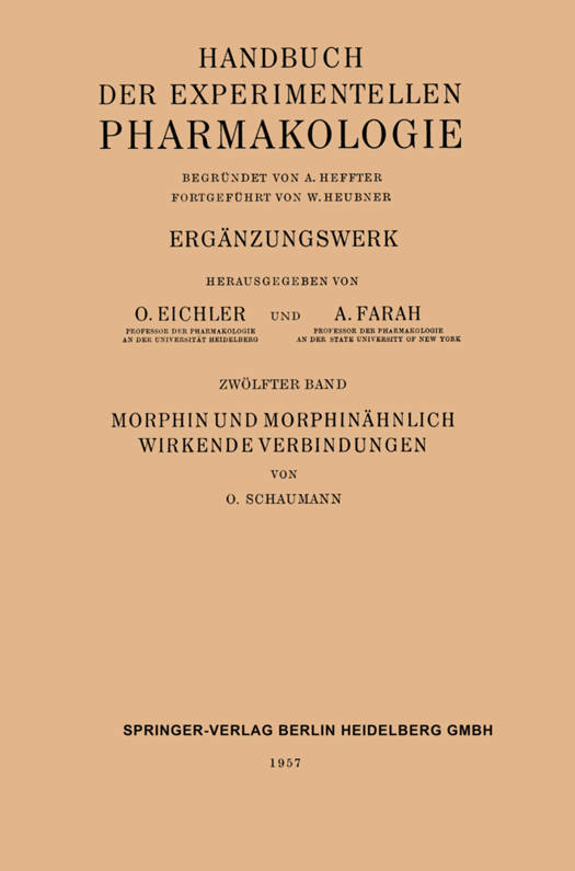 Um den Umfang der vorliegenden Monographie in erträglichen Grenzen zu halten und eine größere Übersichtlichkeit zu wahren, wurden von der Literatur bis zum Jahre 1940 nur diejenigen Arbeiten besprochen, die wesentliches zur Pharmakologie des Morphin beitrugen und auch heute noch Geltung besitzen. Diese Beschränkung war um so eher möglich, als in der ausgezeichneten Mono- graphie von KRUEGER, EnnY und SuMw ALT aus dem Jahr 1941 "The pharmacology of the opium alcaloids" die Weltliteratur bis zu diesem Zeitpunkt fast lückenlos gesammelt und kritisch besprochen worden ist. Dagegen wurde die Literatur nach 1940 bis Anfang 1957 nach Möglichkeit vollständig bearbeitet, wobei von klinischen Arbeiten allerdings nur diejenigen Berücksichtigung fanden, die für die Pharmakologie von Bedeutung sind. Das Jahr 1940 ist durch die Entdeckung der vollsynthetischen, morphinähnlich wirkenden Verbindungen ein Markstein in der Pharmakologie dieser wichtigen Therapeutica. Da infolge der fast unbegrenzten Variationsmöglichkeit der che- mischen Grundtypen jetzt Hunderte von Verbindungen mit morphinähnlicher Wirkung verfügbar wurden, konnte versucht werden, gemeinsames im chemischen Aufbau und in der Pharmakodynamie herauszuarbeiten. Dabei zeigte sich, daß die schmerzstillende Wirkung nicht die einzige, vielleicht nicht einmal die wich- tigste therapeutisch verwertbare Eigenschaft dieser Verbindungen ist. Deshalb wurde mit Absicht im Titel das Wort "Analgetica" vermieden und der allgemeinere Ausdruck "morphinähnlich wirkende Verbindungen" gewählt.