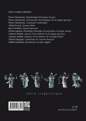 La Morphologie historique du latin d'Alfred Ernout, publiée pour la première fois en 1914, est incontestablement un classique des études de linguistique ancienne, à ce jour non remplacé, et mérite à ce titre d'inaugurer cette nouvelle présentation. Rappelons que la morphologie, branche de la linguistique, est l'étude des mots en fonction des préfixes, suffixes et flexions. Elle est donc particulièrement importante pour comprendre une langue à cas comme le latin.