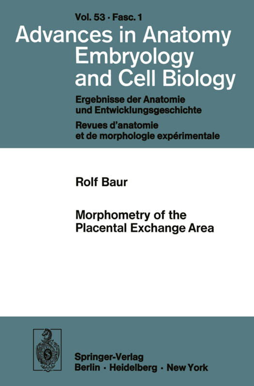 Considering the placenta from the functional point of view as an exchange organ be- tween mother and foetus, it is noteworthy that placentas of all types have a common structural principle in that all placentas have structures enlarging the surface area avail- able for exchange, as is also the case with other organs with similar functions, such as the lungs, kidneys and intestine. It may therefore be assumed that a quantitative rela- tionship must exist between the structure of the placenta and its function. Accurate information on this relationship could contribute to better understanding of the pla- centa and of its function. The study of this relationship requires quantitative physio- logical and morphological data. Detailed data on quantitative morphology (morphometry) are available mainly for the human placenta. Even these data, however, are rather sparse as far as the early sta- ges of development are concerned, because most-studies relate to full term placentas (see Aherne, 1975; Bender et al., 1974; Laga et aI., 1973; Geissler et aI., 1972; Baur, 1972; Cattoor, 1967; Aherne and Dunnill, 1966). We know of only a few morphomet- ric studies concerned with placentas of other animal species. These studies relate to in- vestigations on the development of the placenta of sheep (Stegeman, 1974) and of cat- tle (Baur, 1972), and measurements carried out on full term placentas of the guinea- pig (Millier et aI., 1967) and on full term placentas of various other species (Baur, 1973).
