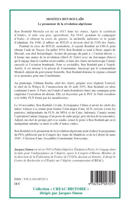 L'objectif de ce livre est de retracer le combat mené par Ben Boulaïd et poursuivi par Chihani Bachir, chef des Aurès, qui en liaison avec Zighout Youssef, chef de la wilaya 2, a lancé l'insurrection du 20 août 1955 qui met fin à l'Algérie du statut de 1947. Ben Boulaïd est alors condamné à mort. La période qui suit, marquée par la dissolution de l'Assemblée nationale, la victoire du Front républicain et l'investiture de Guy Mollet le 2 janvier 1955, fournit le cadre qui explique l'assassinat de Chihani Bachir, la mobilisation du seul MNA et de ses alliés pour empêcher l'exécution de Ben Boulaïd, et ce qui apparaît comme très vraisemblable à l'historien, l'assassinat politique de Ben Boulaïd.