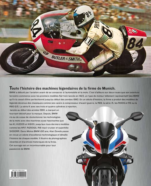 Toute l’histoire des machines légendaires de la firme de Munich. BMW a débuté par l’aviation avant de se consacrer à l’automobile et la moto. C’est d’ailleurs sur deux-roues que son aventure terrestre commence avec les premiers modèles flat-twin lancés en 1923, un type de moteur tellement représentatif des BMW qu’il n’a cessé d’être perfectionné jusqu’au début des années 1980. En un siècle d’histoire, la firme a produit des modèles de légende devenus des classiques comme ses racers à compresseur d’avant-guerre, la R69, la série,5, les R100S et RS ou la R80 G/S. La série K avec ses trois et quatre cylindres à injection, lancée au début des années 1980, a marqué un tournant décisif pour la marque. Depuis, BMW n’a eu de cesse de révolutionner les technologies de la moto avec des machines aussi fascinantes que les K1, K1200S et K1600, jusqu’aux tous derniers modèles comme les HP, F, R1250GS, R18 maxi-cruiser et superbike S1000RR. Dans Motos BMW 100 ans, Alan Dowds passe en revue un siècle d’excellence technologique et détaille l’histoire de chaque modèle.