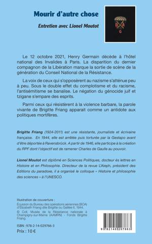 Le 12 octobre 2021, Henry Germain décède à l'hôtel national des Invalides à Paris. La disparition du dernier compagnon de la Libération marque la sortie de scène de la génération du Conseil National de la Résistance. La voix de ceux qui s'opposèrent au nazisme s'atténue peu à peu. Sous le double effet du complotisme et du racisme, l'antisémitisme se banalise. Le négation du génocide juif et tzigane s'empare des esprits. Parmi ceux qui résistèrent à la violence barbare, la parole vivante de Brigitte Friang apparait comme un antidote aux politiques mortifères.