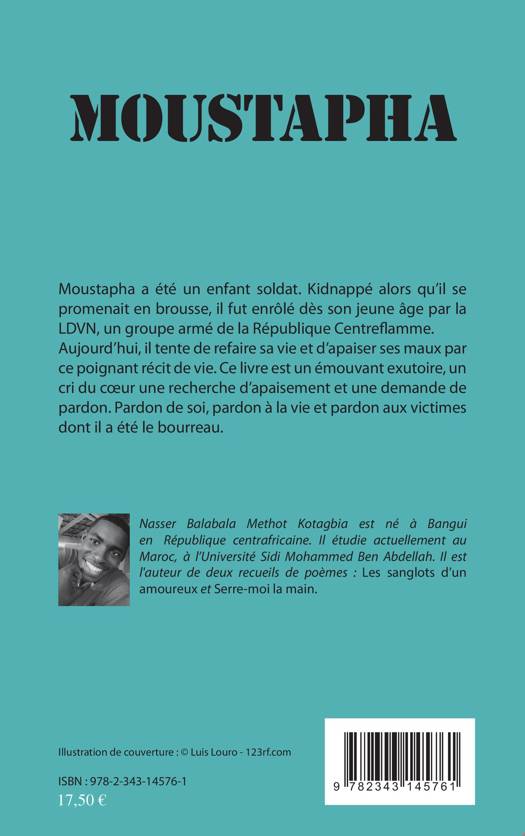 Moustapha a été un enfant soldat. Kidnappé alors qu'il se promenait en brousse, il fut enrôlé dès son plus jeune âge par la LDVN, un groupe armé de la république Centreflamme. Aujourd'hui, il tente de refaire sa vie et d'apaiser ses maux par ce poignant récit de vie.