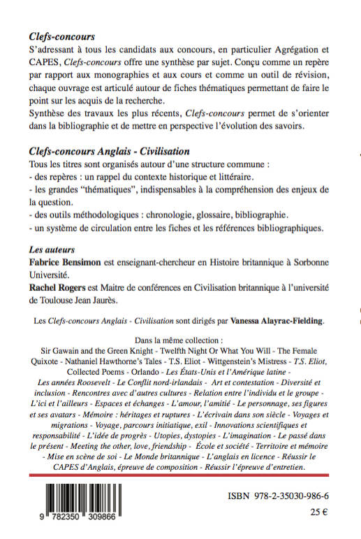 Comme tous les Clefs-concours Anglais-civilisation, l’ouvrage est structuré en cinq parties :