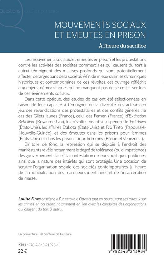 Les mouvements sociaux, les émeutes en prison et les protestations contre les activités des sociétés commerciales qui causent du tort à autrui témoignent des malaises profonds qui affectent la société. Afin de mieux saisir les dynamiques historiques et contemporaines de ces révoltes, cet ouvrage réfléchit aux enjeux démocratiques qui se cristallisent lors de ces événements sociaux. Des études de cas témoignent de la diversité des acteurs, des revendications et des conflits : le cas des Gilets jaunes, celui des Femen (France), d'Extinction Rebellion (Royaume-Uni), ou bien les révoltes visant à suspendre le lockdown (États-Unis). En toile de fond, la répression révèle notamment le degré de tolérance des gouvernements face à la contestation, ainsi que la nature des intérêts protégés.
