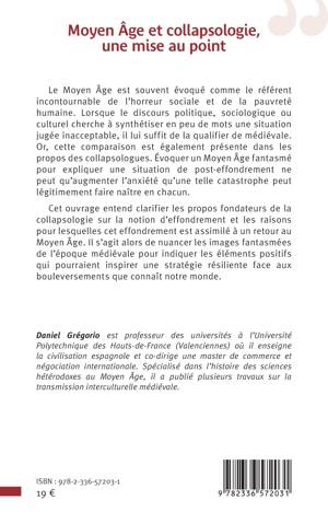 Le Moyen Âge est souvent évoqué comme le référent incontournable de l'horreur sociale et de la pauvreté humaine. Lorsque le discours politique, sociologique ou culturel cherche à synthétiser en peu de mots une situation jugée inacceptable, il lui suffit de la qualifier de médiévale. Or, cette comparaison est également présente dans les propos des collapsologues. Évoquer un Moyen Âge fantasmé pour expliquer une situation de post-effondrement ne peut qu'augmenter l'anxiété qu'une telle catastrophe peut légitimement faire naître en chacun. Cet ouvrage entend clarifier les propos fondateurs de la collapsologie sur la notion d'effondrement et les raisons pour lesquelles cet effondrement est assimilé à un retour au Moyen Âge. Il s'agit alors de nuancer les images fantasmées de l'époque médiévale pour indiquer les éléments positifs qui pourraient inspirer une stratégie résiliente face aux bouleversements que connaît notre monde.