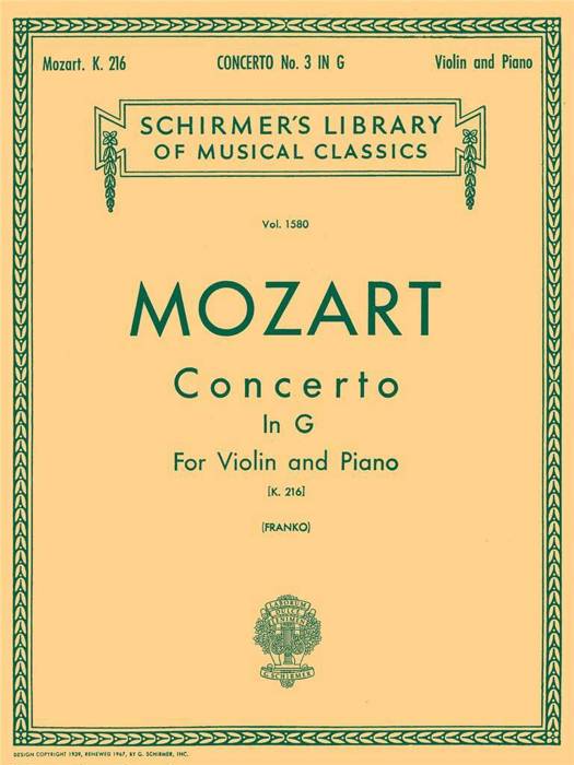 Mozart - Concerto No. 3 in G K.216 Violin and Piano Sheet Music Schirmer's Library of Musical Classics Vol. 1580 Classical Violin Solo with Piano Reduction