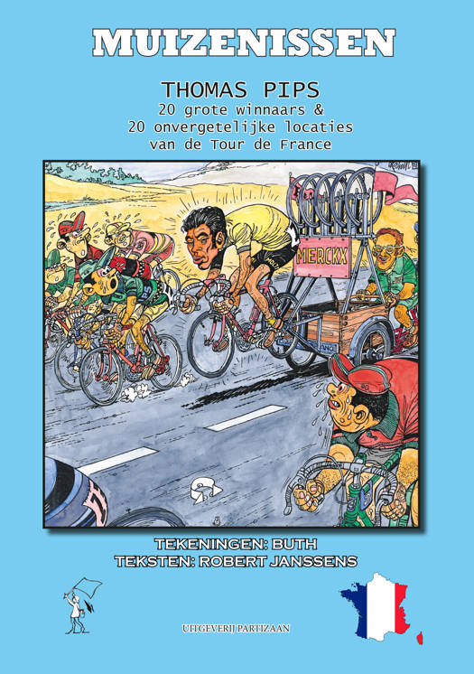 40 cartoons van Thomas Pips door Buth over 20 grote winnaars en 20 onvergetelijke locaties van de Tour de France