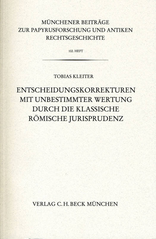 6. Münchener Beiträge zur Papyrusforschung Heft 102: Entscheidungskorrekturen mit unbestimmter Wertung durch die klassische römische Jurisprudenz