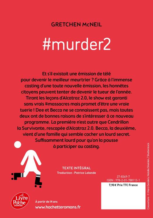 Et s’il existait une émission de télé pour devenir le meilleur meurtrier ? Grâce à l’immense casting d’une toute nouvelle émission, les honnêtes citoyens peuvent tenter de devenir le tueur de l’année. Tirant les leçons d’Alcatraz 2.0, le show est garant sans vrais #massacres mais promet d’être une vraie tuerie ! Dee et Becca ne se connaissent pas, mais toutes deux ont de bonnes raisons de s’intéresser à ce nouveau programme. La première n’est autre que Cendrillon la Survivante, rescapée d’Alcatraz 2.0. Quant à Becca, sa famille semble cacher un secret suffisamment lourd pour la pousser à participer au casting…