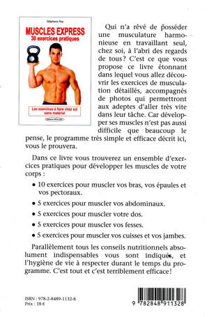 Qui n’a rêvé de posséder une musculature harmonieuse en travaillant seul, chez soi, à l’abri des regards de tous ? C’est ce que vous propose ce livre étonnant dans lequel vous allez découvrir les exercices de musculation détaillés, accompagnés de photos qui permettront aux adeptes d’aller très vite dans leur tâche. Car développer ses muscles n’est pas aussi difficile que beaucoup le pense, le programme très simple et efficace décrit ici, vous le prouvera. Parallèlement tous les conseils nutritionnels absolument indispensables vous sont indiqués, et l’hygiène de vie à respecter durant le temps du programme. C’est tout et c’est terriblement efficace !