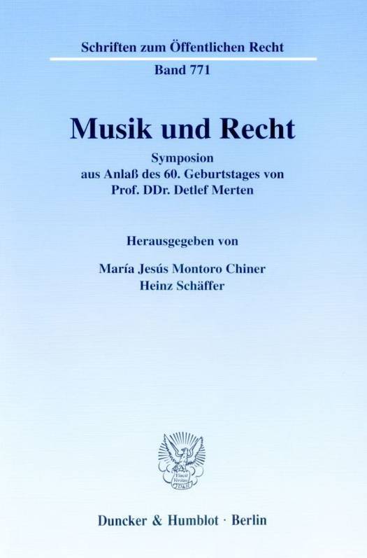 Am 29. November 1997 hat Detlef Merten das 60. Lebensjahr vollendet. Aus diesem Anlass haben ihm Freunde und Kollegen ein Geburtstagssymposion bereitet, dessen Ergebnisse in diesem Band einer breiteren Offentlichkeit prasentiert werden. Die Autoren dieses Bandes haben das gemeinsame Anliegen, die Vielfalt der Interessen Mertens widerzuspiegeln und dabei einen Gleichklang von juristischer Problembehandlung einerseits und Wissenschaft, Kunst, Musik andererseits als Gegenstand des Rechts herzustellen. Detlef Merten ist namlich ein scharfsinniger Denker uber Staat und Recht, dessen private Neigung auch den schonen Kunsten, vor allem der Musik gehort. Das Thema "Musik und Recht" entspricht somit den besonderen Neigungen des Jubilars, es ist aber auch ein Thema, welches aus dieser Sicht noch kaum behandelt worden ist. Den Auftakt bildet eine geradezu musikalisch durchkomponierte Wurdigung des Wissenschaftlers und Menschen Detlef Merten von Maria Jesus Montoro Chiner. Es folgen verwaltungsrechtliche und verwaltungspolitische Uberlegungen von Karl Korinek zur rechtlichen Organisation von Operntheatern. Wie das Verwaltungsrecht die im Laufe vieler Jahrhunderte immer wieder auftretende Feuersgefahr fur Musiktheater zu bannen trachtet, stellt Heinz Schaffer sowohl historisch als auch am Beispiel der osterreichischen Rechtsordnung dar; die Spannungslage zwischen verwaltungsrechtlichen Vorschriften und der Kunstfreiheit fuhrt letztlich zur der Frage, ob es so etwas wie ein Polizeirecht fur Grundrechtsausubung gibt. Auf Disharmonien zwischen deutscher und europaischer Besteuerung der Universitatsforschung konzentriert sich der Beitrag von Ferdinand Kirchhof. Sodann stellt Georg Ress dar, auf welch uberraschend vielfaltige Weise das Europaische Gemeinschaftsrecht auf die Musik Bezug nimmt. Der Band schliesst mit einem Beitrag von Elmar Wadle uber Werke der Musik im preussischen Urheberrecht des 19. Jahrhunderts; der zeigt, mit welchen Schwierigkeiten der Rechtsverfolgung beruhmte Musikschaffende in einem Zeitalter zu tun hatten, als die europaische Einigung und Rechtsvereinheitlichung noch nicht einmal in Ansatzen begonnen hatte. In einem Anhang dokumentiert der Band schliesslich auch den Lebenslauf und das bisherige wissenschaftliche Werk Detlef Mertens.