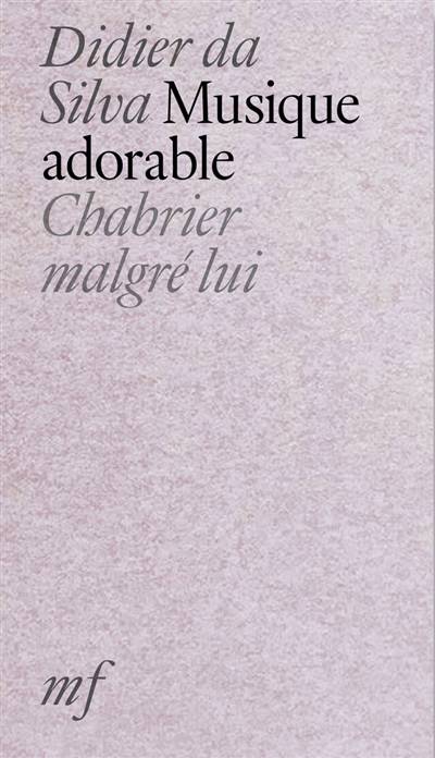 Musique adorable : Chabrier malgré lui n'est ni une biographie au sens académique, ni un roman, et pourtant c'est un texte qui participe de ces deux genres. Il emprunte sa rigueur au premier – tout ce qu'il relate de la vie du compositeur Emmanuel Chabrier (1841-1894) est avéré et toutes ses citations scrupuleusement exactes – et sa liberté au second, dans sa manière d'agencer les faits, de les éclairer, de les couler dans le rythme d'une prose dont le souci majeur est d'être plastique et musicale. De ces deux genres, par ailleurs, il néglige certains aspects : l'exhaustivité de la biographie, l'imagination du roman. En effet Musique adorable n'invente presque rien, sinon sa façon, elliptique, légère, amoureuse, de raconter une histoire vraie, l'histoire gaie et poignante d'un musicien original, aussi doué pour la vie que peu gâté par elle (or ce sont les malheurs qui l'accablent, indifférence, faillite, incendie, maladie, outre sa position marginale dans la vie artistique très bourgeoise du XIXe siècle, qui en font tout le romanesque). Il s'agit là d'une « interprétation », dans toute l'ambiguïté lyrique et subjective du terme. Ainsi pourrait-on dire que le texte se divise en 38 « chants », 38 brefs chapitres qui retracent chronologiquement les grandes étapes de la vie et de l'oeuvre hautes en couleur de Chabrier. De nombreux extraits de la correspondance de Chabrier, prolixe et réjouissant épistolier, émaillent le texte, lequel espère se montrer à la hauteur de sa verve. Car ses lettres comme sa musique, si elles ont leurs mélancolies, respirent la joie ; et Musique adorable se veut joyeux et enlevé, quand bien même il chemine vers une fin navrante, quand bien même vise-t-il par-dessus tout la compassion et l'émotion du lecteur. C'est un rire étranglé par un sanglot ; c'est aussi et d'abord, sans doute, un exercice d'admiration pour un « outsider » magnifique.