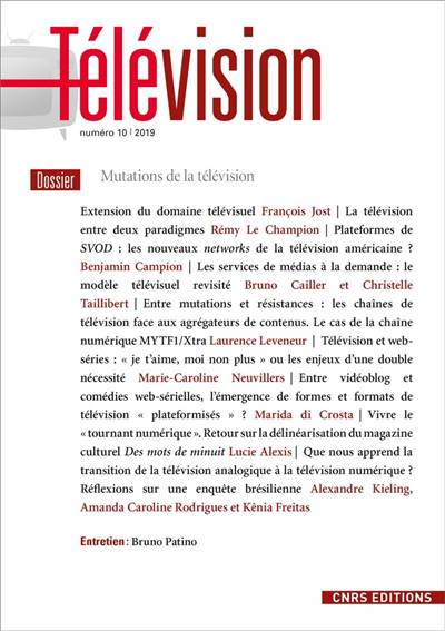 Plutôt que de prédire la mort d'un média, ce dixième numéro de Télévision s'attache à en comprendre les mutations actuelles, sous leurs multiples dimensions : production, diffusion, programmation, usages, sans négliger leurs conséquences en termes formels et narratifs sur les contenus.