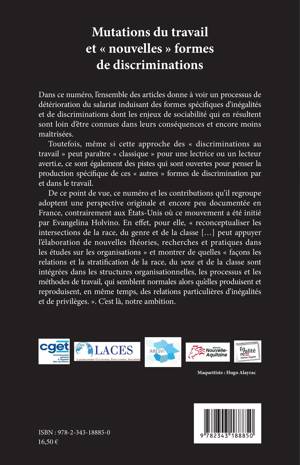 Dans ce numéro, l'ensemble des articles donne à voir un processus de détérioration du salariat induisant des formes spécifiques d'inégalités et de discriminations dont les enjeux de sociabilité qui en résultent sont loin d'être connues dans leurs conséquences et encore moins maîtrisées. Toutefois même si cette approche des "discriminations au travail" peut paraitre "classique" pour une lectrice ou un lecteur averti.e, ce sont également des pistes qui sont ouvertes pour penser la production spécifique de ces "autres" formes de discrimination par et dans le travail.