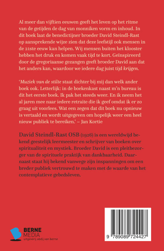 Al meer dan vijftien eeuwen geeft het leven op het ritme van de getijden de dag van monniken vorm en inhoud. In dit boek laat de benedictijner broeder David Steindl-Rast op aansprekende wijze zien dat deze leefstijl ook mensen in de 21ste eeuw kan helpen. Wij mensen buiten het klooster hebben het druk en komen vaak tijd te kort. Geïnspireerd door de gregoriaanse gezangen geeft Broeder David aan dat het anders kan, waardoor we iedere dag juist tijd krijgen. Het eeuwenoude Gregoriaans herontdekt als inspirerende lifestyle voor vandaag!