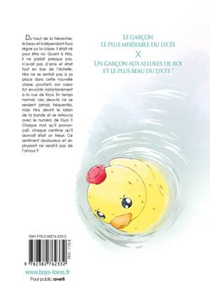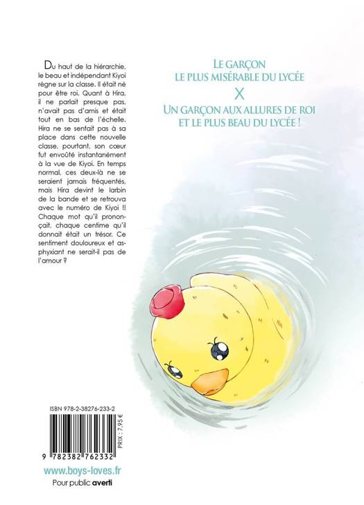 Du haut de la hiérarchie, le beau et indépendant Kiyoi règne sur la classe. Il était né pour être roi. Quant à Hira, il ne parlait presque pas, n'avait pas d'amis et était tout en bas de l'échelle. Hira ne se sentait pas à sa place dans cette nouvelle classe, pourtant, son coeur fut envoûté instantanément à la vue de Kiyoi. En temps normal, ces deux-là ne se seraient jamais fréquentés, mais Hira devint le larbin de la bande et se retrouva avec le numéro de Kiyoi !! Chaque mot qu'il prononçait, chaque centime qu'il donnait était un trésor. Ce sentiment douloureux et asphyxiant ne serait-il pas de l'amour ?