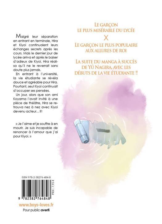 Malgré leur séparation en entrant en terminale, Hira et Kiyoi continuaient leurs échanges secrets après les cours. Mais le dernier jour de lycée arriva et après le baiser d'adieux de Kiyoi, Hira réalisa qu'il ne le reverrait sans doute plus jamais. En entrant à l'université, la vie étudiante se révéla douce et agréable pour Hira. Pourtant, seul Kiyoi continuait d'occuper ses pensées. Un jour, alors que son ami Koyama l'avait invité à une pièce de théâtre, Hira se retrouva nez à nez avec Kiyoi devenu acteur...?!