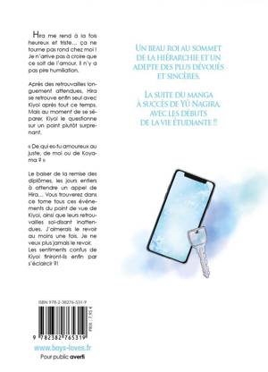 Le baiser de la remise des diplômes, les jours entiers à attendre un appel de Hira... Vous trouverez dans ce tome tous ces événements du point de vue de Kiyoi, ainsi que leurs retrouvailles soi-disant inattendues. J'aimerais le revoir au moins une fois. Je ne veux plus jamais le revoir. Les sentiments confus de Kiyoi finiront-ils enfin par s'éclaircir ?!