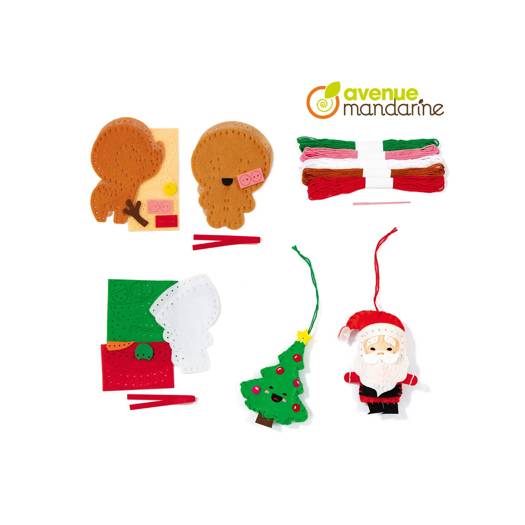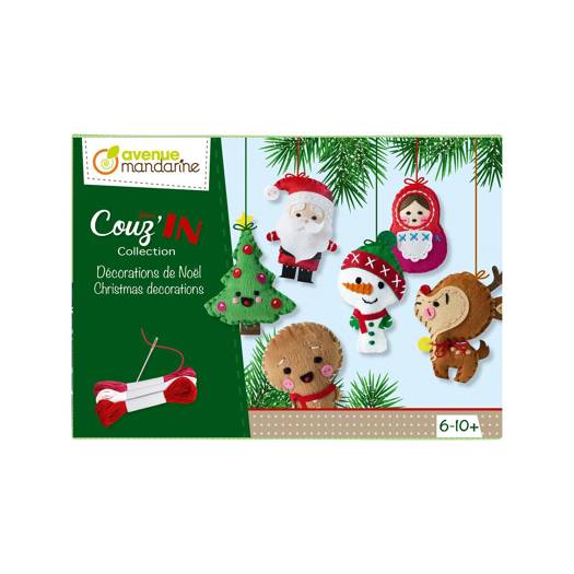 Boîte créative, Mini Couz'IN, Décorations de Noël Les mini Couz'In s'invitent pour les fêtes ! Cette boite créative contient 5 suspensions de Noël à coudre pour initier les enfants à la couture, leur permettre de développer leur dextérité tout en apportant une touche d'originalité à votre sapin. Contenu : Eléments de feutrine pré-découpés x6, ouate de rembourrage, 2 aiguilles en plastique, 10 bobines de fil, 5 notices. Conforme aux normes CE - A partir de à partir de 6 ans.