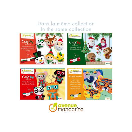 Boîte créative, Mini Couz'in suspensions de Noël Les Mini Couz'In reviennent pour les fêtes !Cette boîte créative contient 6 suspensions de Noël à coudre pour initier les enfants à la couture, leur permettre de développer leur dextérité et pour apporter une touche d'originalité à votre sapin ! Eléments de feutrine prétroués (x6) - Ouate de rembourrage - 2 aiguilles en plastique - 9 bobines de fils - 6 notices.