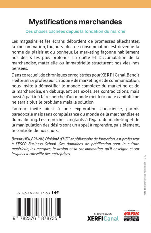Dans ce recueil de chroniques enregistrées pour XERFI Canal, Benoît Heilbrunn, « professeur critique » de marketing et de communication, nous invite à démystifier le monde complexe du marketing et de la marchandise, en débusquant ses excès, ses contradictions, mais aussi à partir à la recherche d’un monde meilleur où le capitalisme ne serait plus le problème mais la solution.