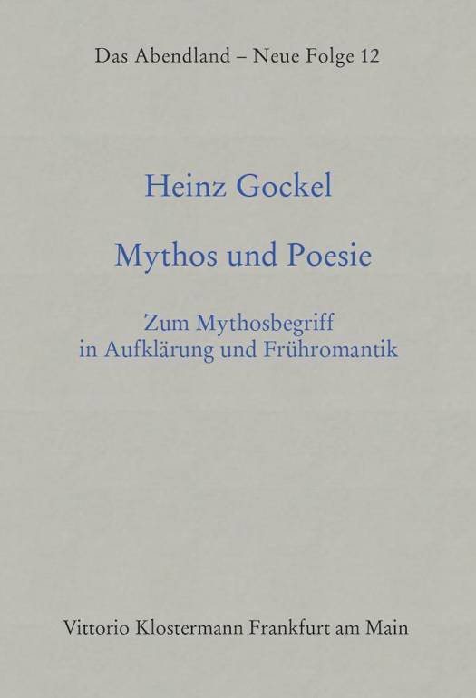 Die Untersuchung behandelt den Mythosbegriff im 18. Jahrhundert von der französischen Aufklärung bis zur deutschen Frühromantik. Sie überwindet als Poetik die Altemative von Mythos und Logos, indem sie das erkenntniskritische Potential des Mythos als Fabel der Dichtung erschließt. Die wichtigsten Stationen der Abhandlung: die Academie des Inscription et Belles Lettres, Vicos Scienza nuova, Herders Auseinandersetzung mit Klotz, der Spinozastreit, die Erneuerung des mythopoetischen Bewußtseins durch die Brüder Schlegel und Schelling.
