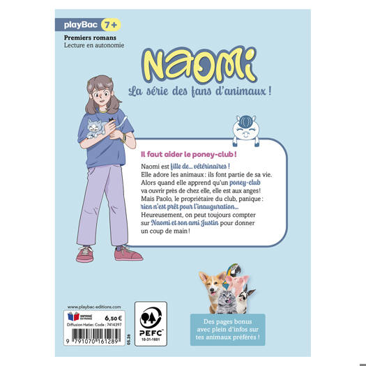 Naomi est fille de… vétérinaires ! Elle adore les animaux : ils font partie de sa vie. Alors quand elle apprend qu’un poney-club va ouvrir près de chez elle, elle est aux anges ! Mais Paolo, le propriétaire du club, panique : rien n’est prêt pour l’inauguration… Heureusement, on peut toujours compter sur Naomi et son ami Justin pour donner un coup de main !
