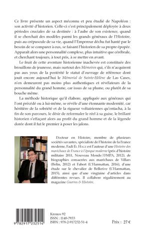 Ce livre présente un aspect méconnu et peu étudié de Napoléon : son activité d'historien. Apparaît alors une personnalité complexe, plus intuitive que cérébrale, et cherchant toujours, à tout prix, à se mettre en avant. Le fruit de cette aventure historienne inachevée est constituée des brouillons de jeunesse, mais surtout des Mémoires, plus authentiques et révélateurs de la personnalité du grand homme, car issus de sa plume, ou plutôt de sa bouche même. La méthode historique qu'il élabore, appliquée aux généraux qui l'ont précédé ou à lui-même, se révèle d'une étonnante modernité.