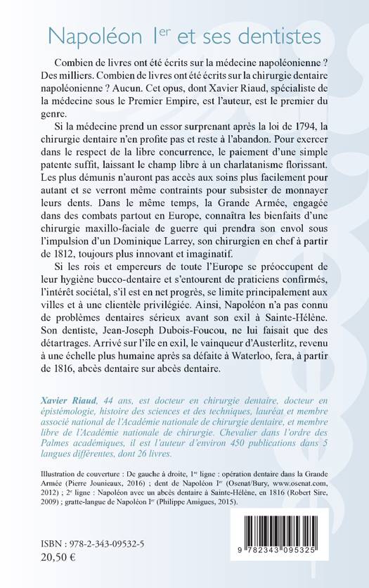 Alors qu'il existe de nombreux ouvrages sur la médecine napoléonienne, il n'en existe aucun sur la chirurgie dentaire napoléonienne, celui-ci est le premier du genre. L'auteur s'intéresse donc aux problèmes dentaires de Napoléon et de ses proches, mais il dresse également un état des lieux de la dentisterie à l'orée du Premier Empire : ses lois, ses codes et autres obligations.