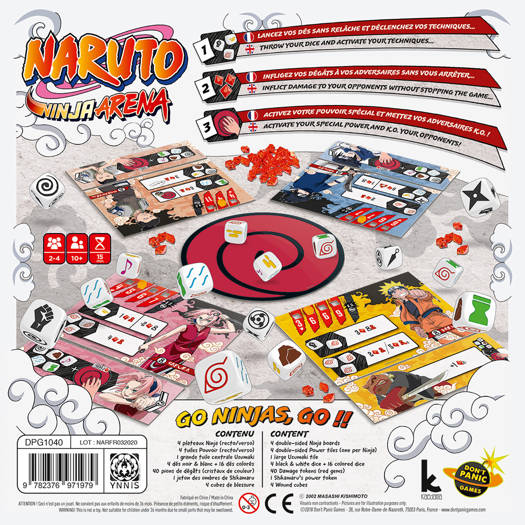 Bienvenue dans le monde de Naruto ! Dans cet univers, différents villages s’affrontent en envoyant leurs meilleurs combattants, les ninjas, affronter ceux de leurs rivaux. Chacun dispose de techniques ainsi que d’un pouvoir. En utilisant au mieux ses capacités, chaque ninja va essayer de vaincre ses adversaires en leur faisant des dégâts qui peuvent occasionner des blessures et parfois même l’élimination ! Le dernier combattant encore debout alors que tous ses adversaires sont éliminés l’emporte.