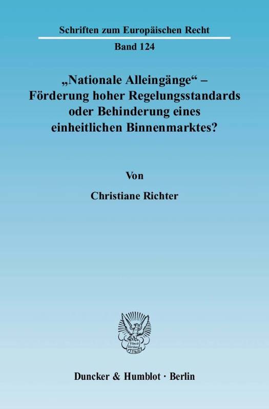 Nationale Alleingange - Forderung Hoher Regelungsstandards Oder Behinderung Eines Einheitlichen Binnenmarktes?