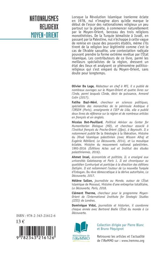 Lorsque la Révolution islamique iranienne éclate en 1978, nul n’imagine alors qu’elle marque le début de l’essor des nationalismes religieux un peu partout sur la planète, à commencer naturellement par le Moyen-Orient, berceau des trois religions monothéistes. De la Turquie kémaliste à Israël, en passant par la Palestine, nul n’échappe à cette vague de remise en cause des pouvoirs établis, même s’ils tirent de la religion leur légitimité comme c’est le cas de l’Arabie saoudite, une contestation radicale pouvant prendre la forme extrême revêtue par l’État islamique. Les contributeurs de ce livre dressent un état des lieux et analysent ce phénomène politico-religieux qui s’est emparé du Moyen-Orient, sans doute pour longtemps.